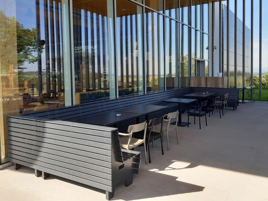 Terrassenbänke der Serie München produzieren wir in beliebiger RAL-Farbe und in Längen passgenau für Ihre Terrasse!