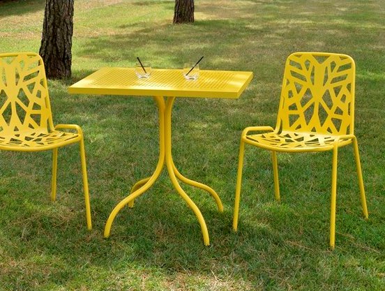 Gastgartentische, Gestell Stahlrohr inklusive Blechplatte mit oder ohne Stanzmuster, Standard anthrazit pulverbeschichtet.