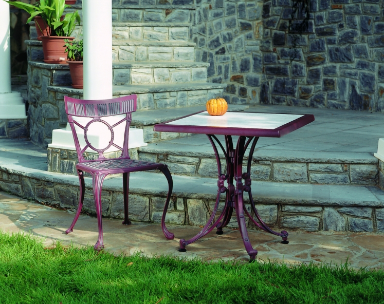 Terrassentischgestelle aus Aluguss, in vielen Farben möglich.