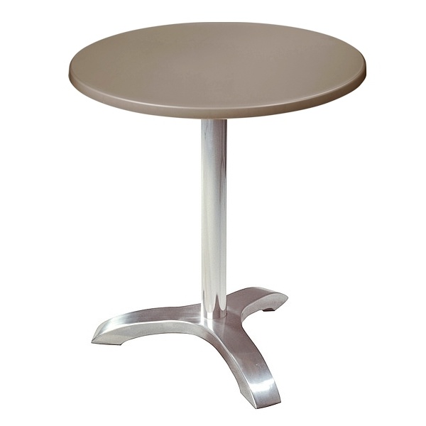 Tischgestelle 3-Fuß, Aluminium silber, glänzend poliert, Fußgleiter höhenverstellbar, inkl. Einschraubgewicht für erhöhte Standfestigkeit.
