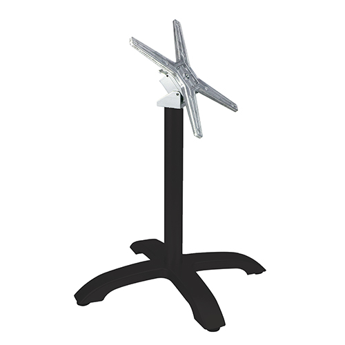 Terrassentischgestelle 4-Fuß,  Aluminium Silber glänzend poliert oder schwarz pulverbeschichtet, inkl. Einschraubgewicht für erhöhte Standfestigkeit, hochwertige Terrassenmöbel, praktisch und langlebig. Fußgleiter höhenverstellbar, mit oder ohne Abklappmechanismus möglich.