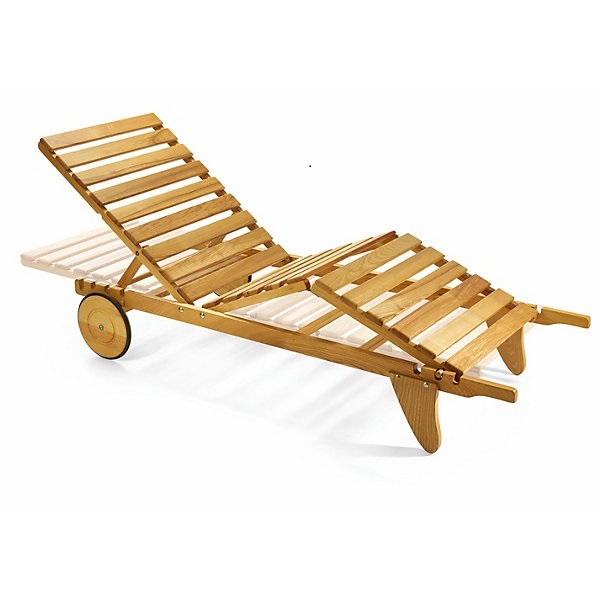 Stapelbare Sonnenliegen aus Massivholz, verstell- und fahrbar