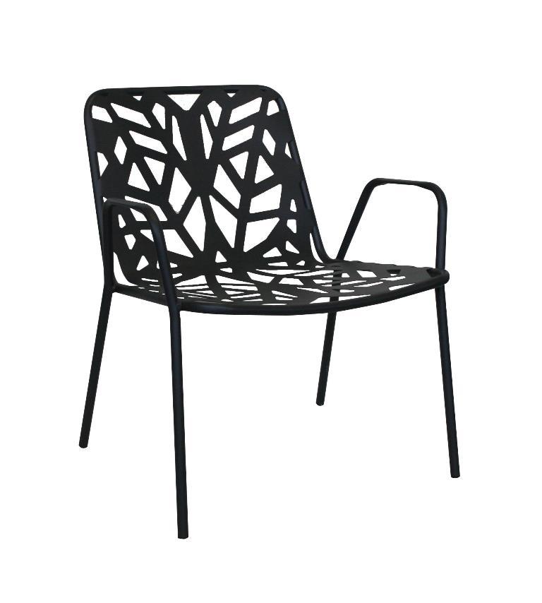 Stapelbare Gastgartenstühle, niedrigere Sitzhöhe, mit Armlehne, Gestell Stahlrohr, Standard in anthrazit oder weiß pulverbeschichtet sowie bunt in ausgewählten RAL-Farben mit Aufpreis und Mindestbestellmenge möglich.