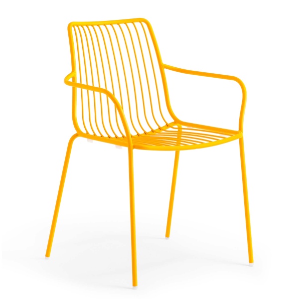 Stapelbare Terrassenstühle aus Stahlrohr in leichter Spaghettioptik – viele Farben möglich