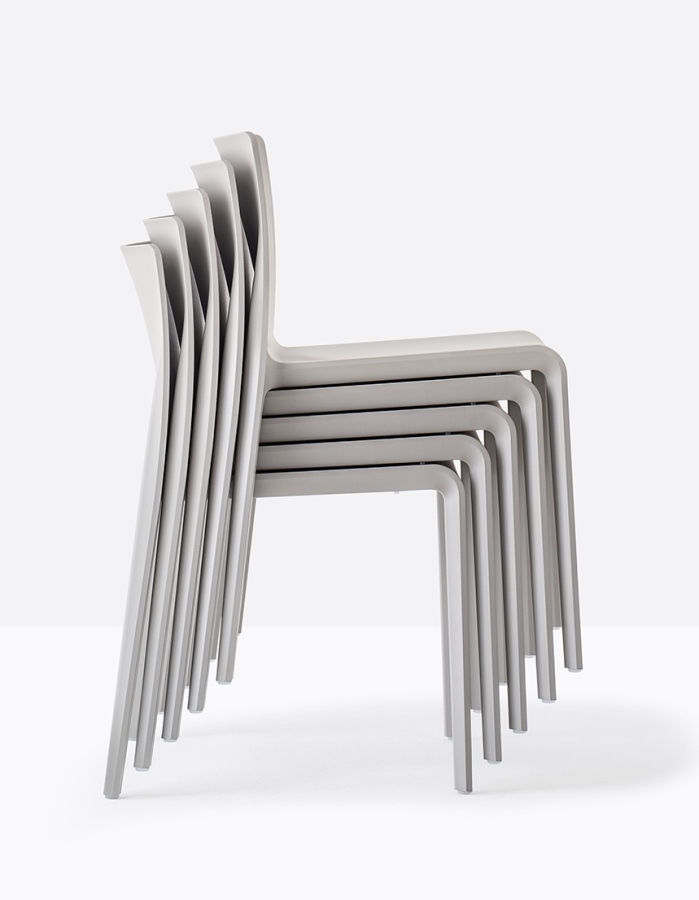 das Gestell der Stühle ist aus Vollkunststoff Polypropylen glasfaserverstärkt in diversen Farben erhältlich.