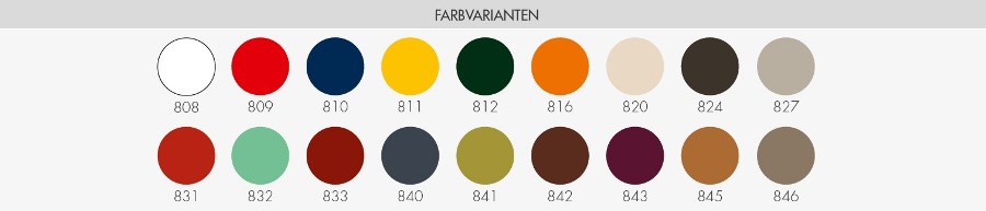 Standardfarben natur, dunkelgrün, terracotta und anthrazit, anderen Farbwunsch bitte separat angeben