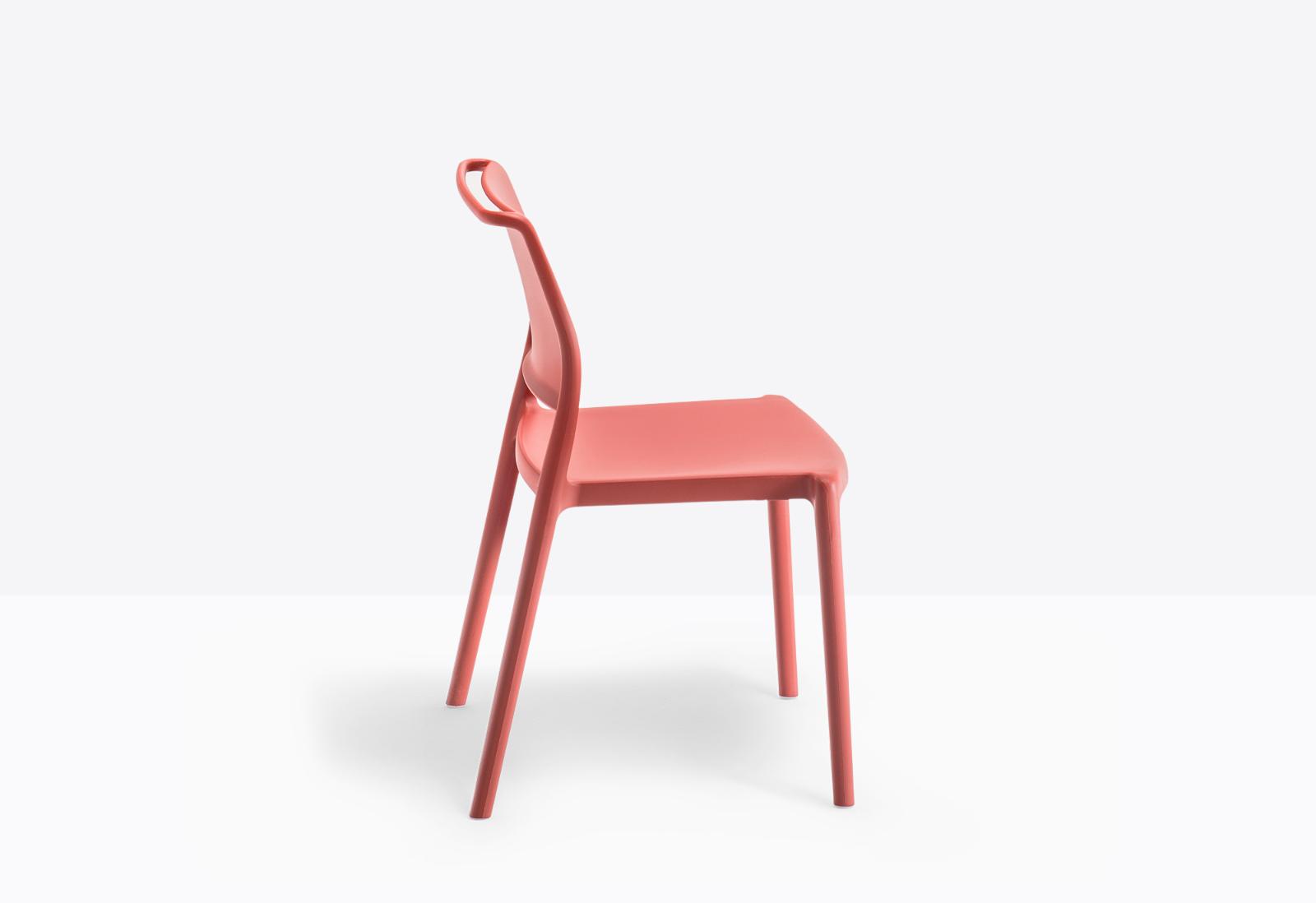 Stapelbare Gastgartenstühle mit Griffleiste an der Rückenlehne, hergestellt aus Vollkunststoff PP und in zehn verschiedenen Farben erhältlich.