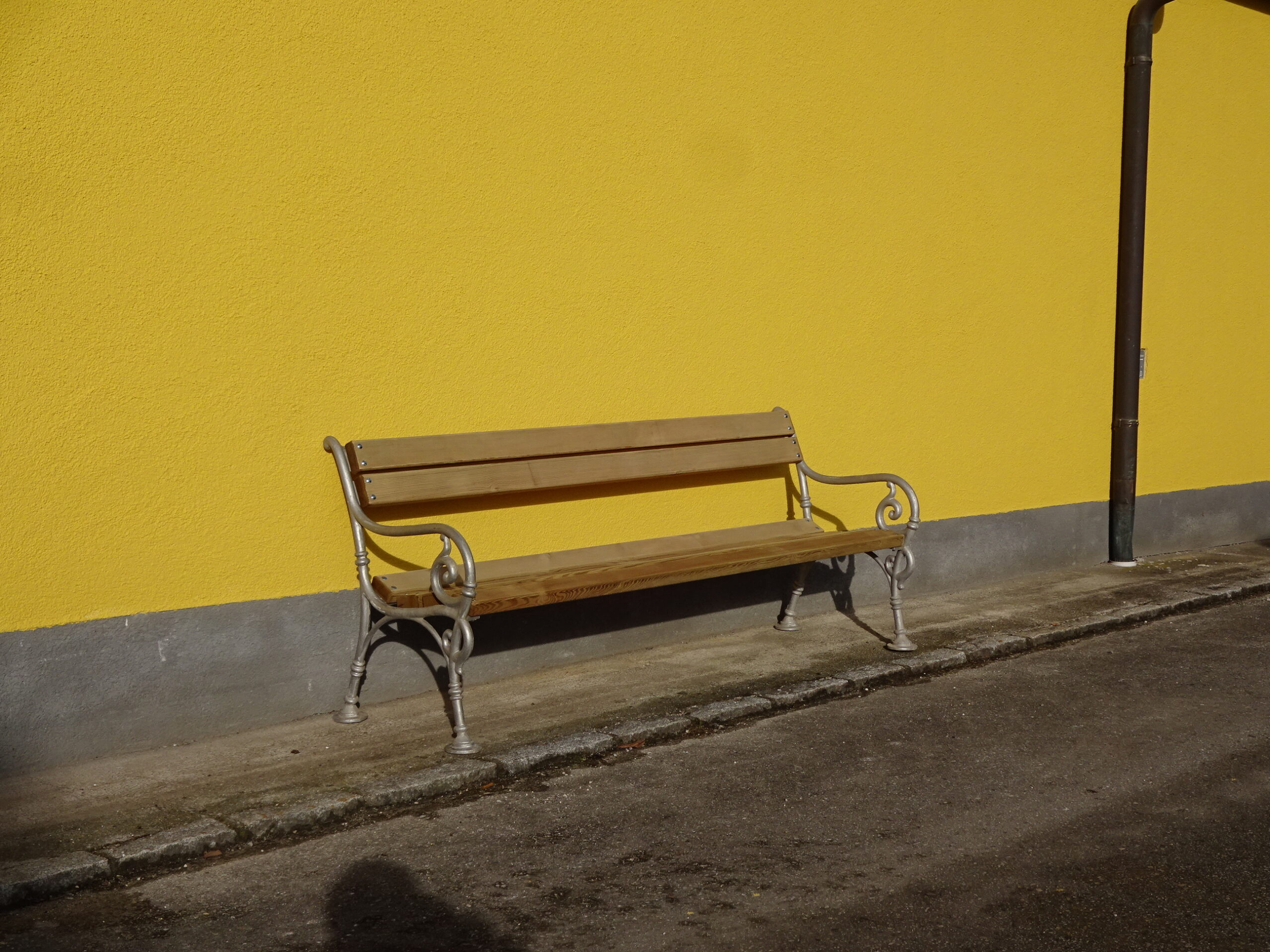 Üblicherweise sind die Seitenteile aus Stahlguss, diese wenigen Stück haben Seitenteile aus Aluminiumguss und sind von einer Sonderfertigung übrig geblieben. Das Aluminium ist natur unbehandelt siehe Foto und hat teilweise eine leichte Patina, silber-grau, die Belattung ist Kiefer kesseldruckimprägniert. Andere Ausführungen (Gestell zusätzlich beschichtet, andere Holzbelattung) auf Anfrage gegen Aufpreis möglich.