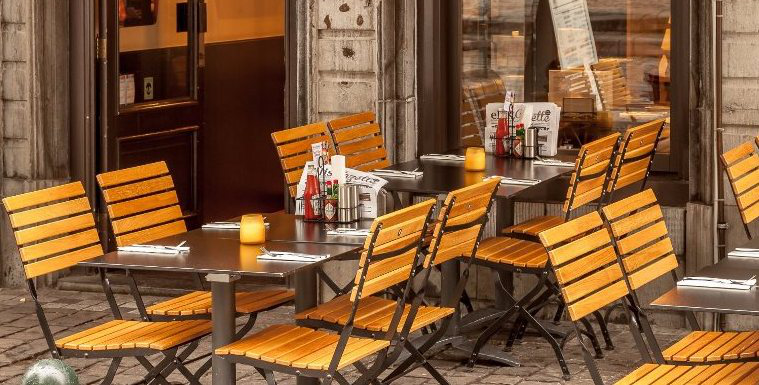 Biergartenstühle Modell Corina ohne Arm, Gestell schwarz, Belattung Eiche natur lasiert oder geölt – Limited Edition
